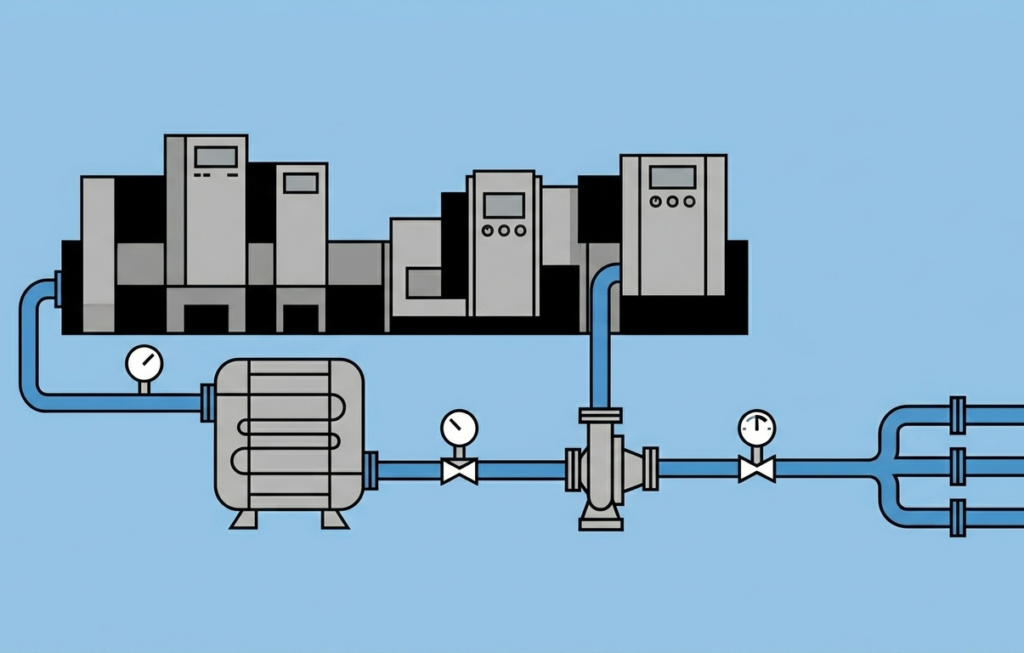 Με σύγχρονες τεχνολογικές λύσεις και εξειδικευμένο σχεδιασμό, τα συστήματα αυτά προσαρμόζονται πλήρως στις ανάγκες κάθε εγκατάστασης, καλύπτοντας διαδικασίες όπως ψύξη, καθαρισμός, παραγωγή και γενική χρήση νερού στη βιομηχανία. Ιδιαίτερη έμφαση δίνεται στην ενεργειακή αποδοτικότητα, την ασφάλεια και τη συνεχή, απρόσκοπτη λειτουργία.